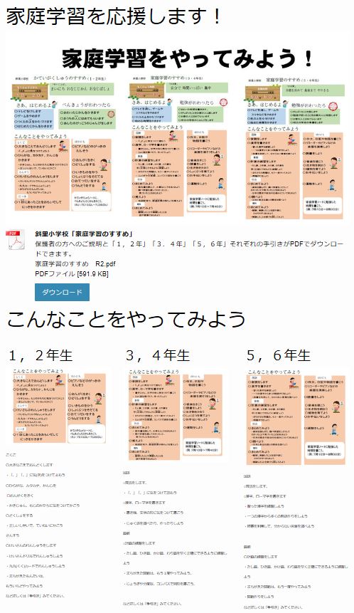 塩谷先生勤務校「斜里市立斜里小学校」サイト「家庭学習応援」へはコチラへ