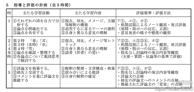 5,指導と評価の計画(全五時間)