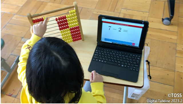 ⑭百玉そろばんと1人1台端末だけを机上に出させる