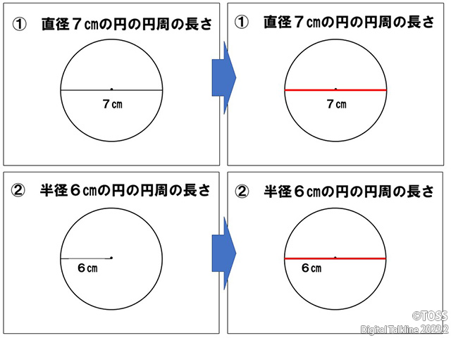 ⑥見える化し、直径をなぞらせる