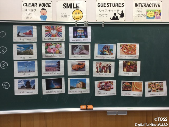 ②ピクチャーカードを黒板に提示する工夫