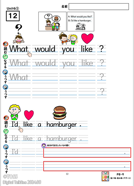 ⑧ICTを活用した読み書き指導 Unit7 What would you like?