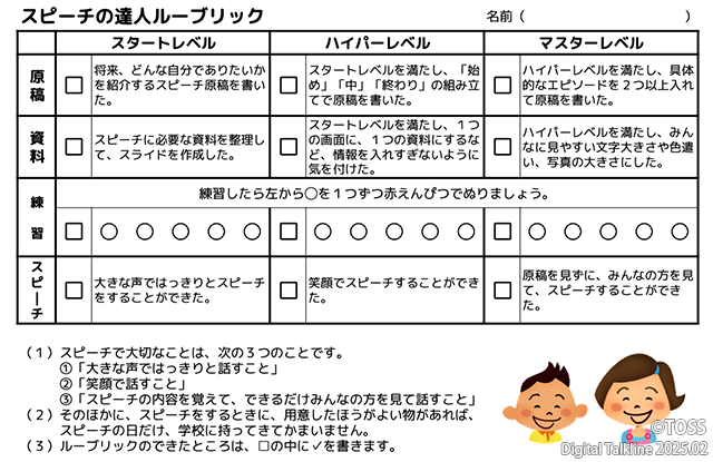 スピーチ練習ルーブリック(6年生Ver.) – Google スプレッドシート(pdf)